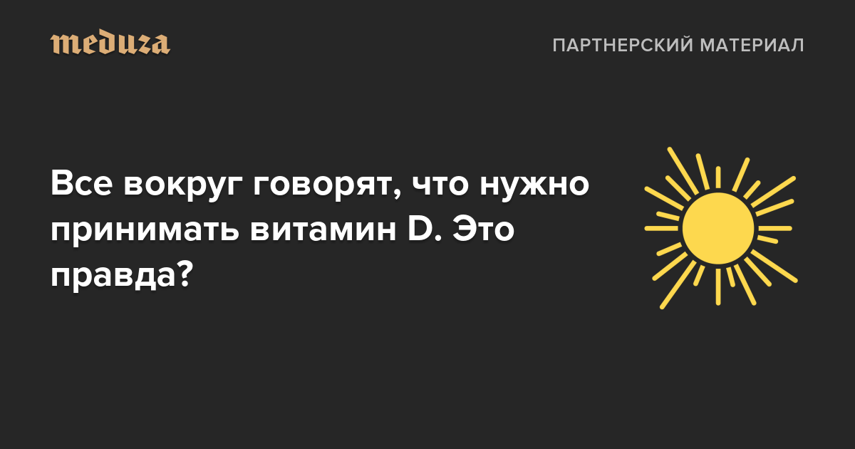 Все вокруг говорят, что нужно принимать витамин D. Это правда?