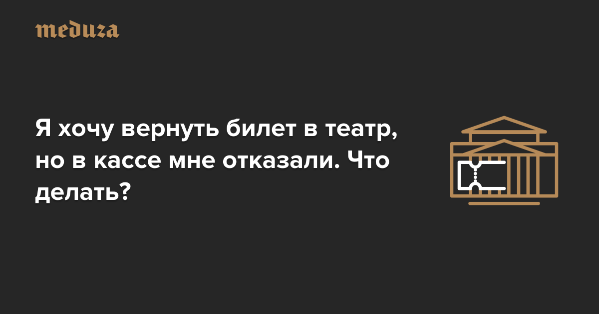 В редакцию «Медузы» написала читательница Алиса Шабанова, которая рассказала, что не смогла вернуть билеты в Большой театр на балет «Щелкунчик». По семейным обстоятельствам они с мужем и ребенком не смогут пойти на спектакль. В кассе театра принять билеты отказались, в администрации на заявление о возврате также ответили отказом.