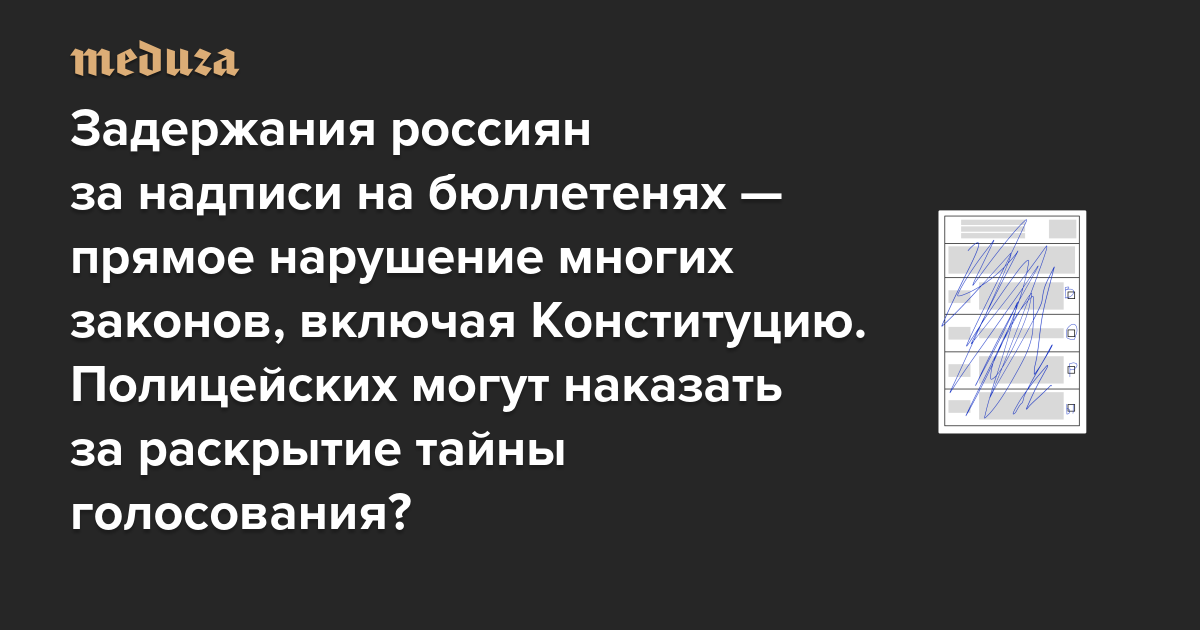 Задержания россиян за надписи на бюллетенях — прямое нарушение многих законов, включая Конституцию. Полицейских могут наказать за раскрытие тайны голосования?