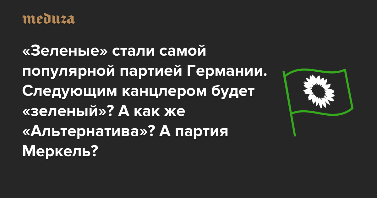 «Зеленые» стали самой популярной партией Германии. Следующим канцлером будет «зеленый»? А как же «Альтернатива»? А партия Меркель?