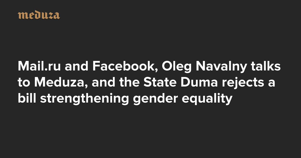 The Real Russia. Today. Mail.ru and Facebook, Oleg Navalny talks to Meduza, and the State Duma rejects a bill strengthening gender equality