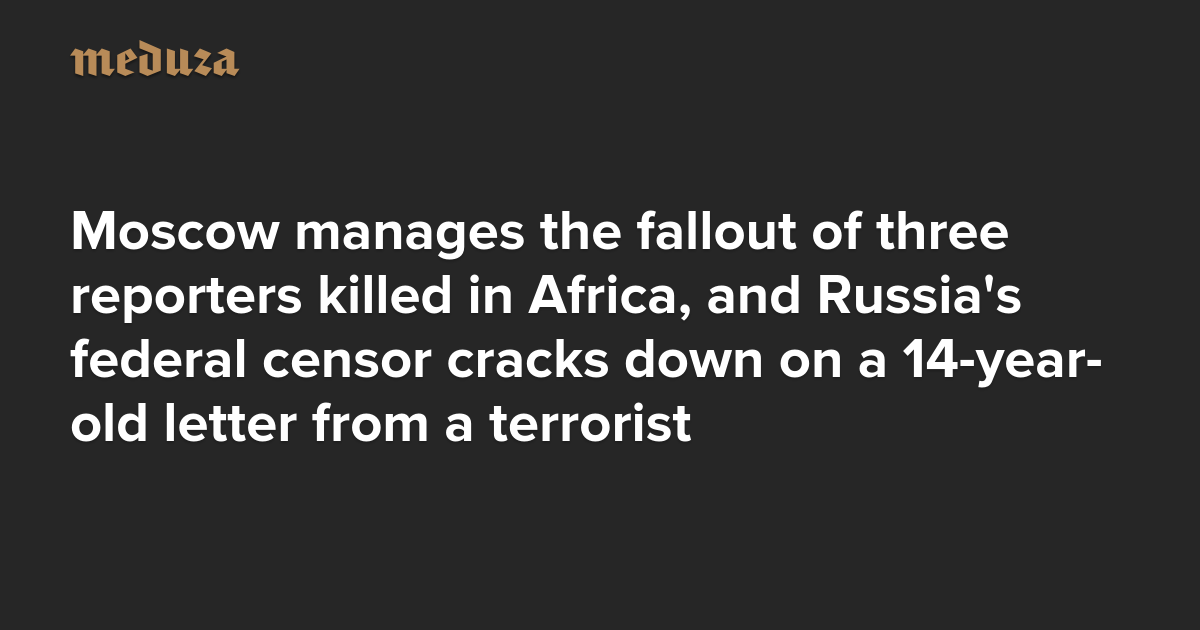 The Real Russia. Today. Moscow manages the fallout of three killed reporters in Africa, and Russia’s federal censor cracks down on a 14-year-old letter from a terrorist