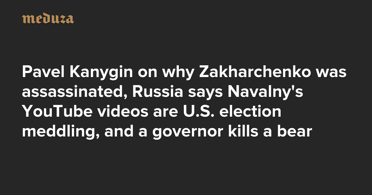 The Real Russia. Today. Pavel Kanygin on why Zakharchenko was assassinated, Russia says Navalny’s YouTube videos are U.S. election meddling, and a governor kills a bear