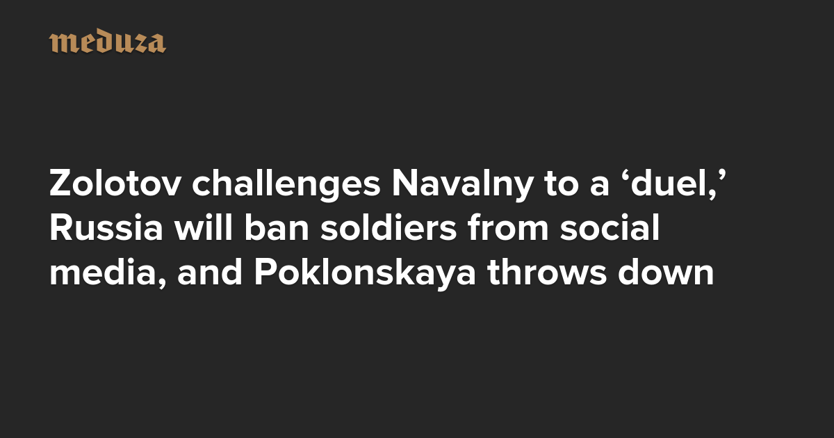 The Real Russia. Today. Zolotov challenges Navalny to a ‘duel,’ Russia will ban soldiers from social media, and Poklonskaya throws down