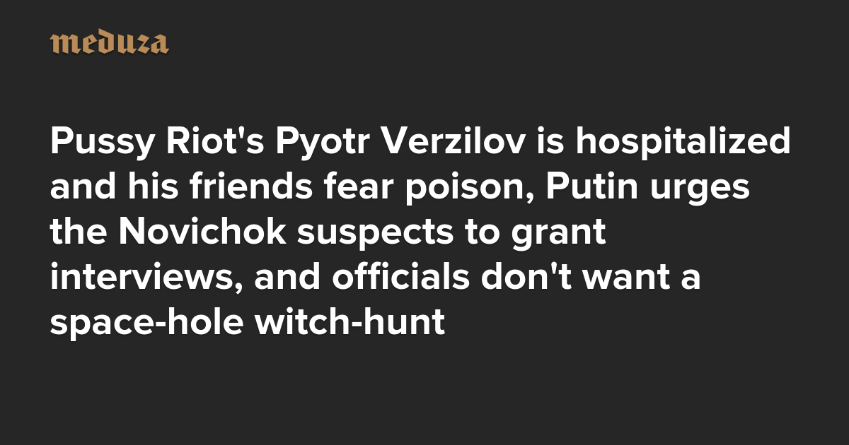 The Real Russia. Today. Pussy Riot’s Pyotr Verzilov is hospitalized and his friends fear poison, Putin urges the Novichok suspects to grant interviews, and officials don’t want a space-hole witch-hunt