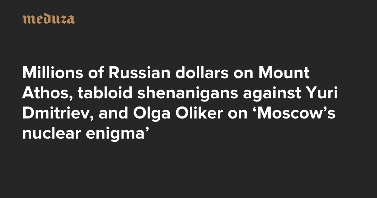 The Real Russia. Today. Millions of Russian dollars on Mount Athos, tabloid shenanigans against Yuri Dmitriev, and Olga Oliker on ‘Moscow’s nuclear enigma’