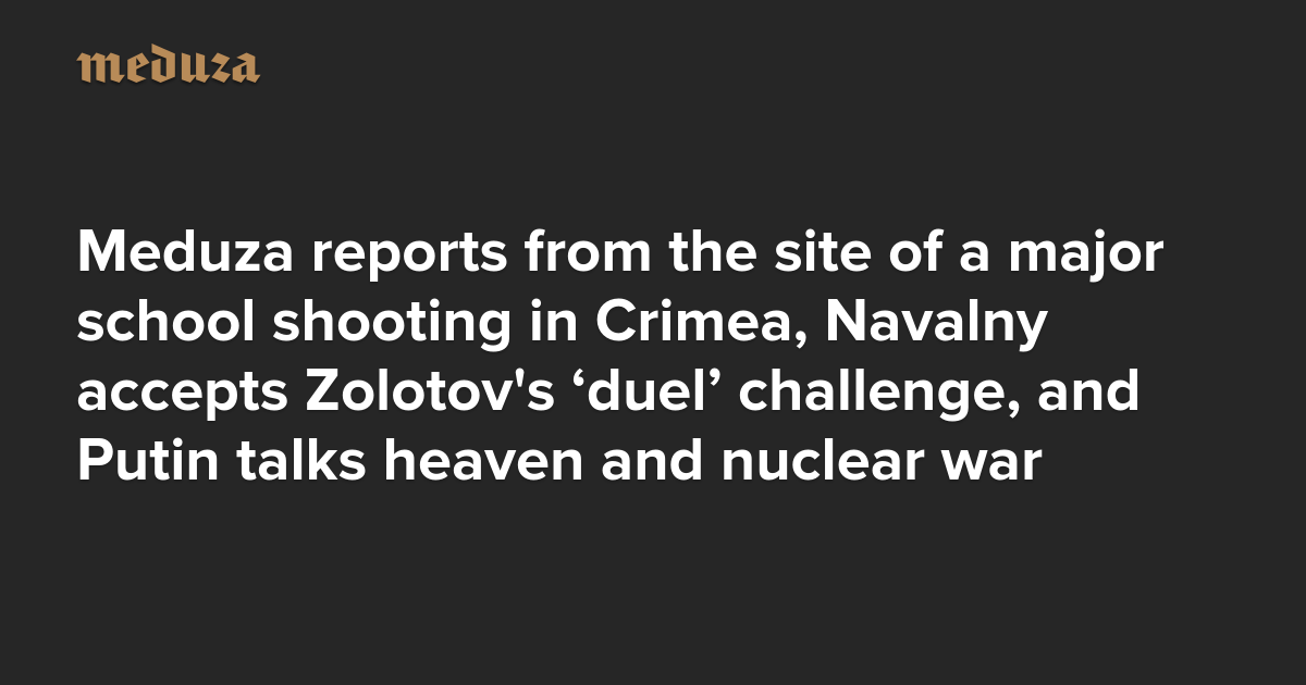 The Real Russia. Today. Meduza reports from the site of a major school shooting in Crimea, Navalny accepts Zolotov's ‘duel’ challenge, and Putin talks heaven and nuclear war