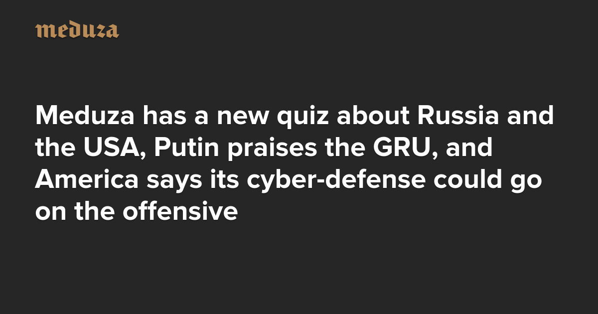 The Real Russia. Today. Meduza has a new quiz about Russia and the USA, Putin praises the GRU, and America says its cyber-defense could go on the offensive
