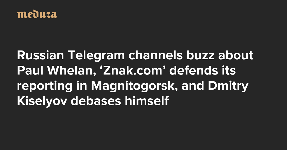 The Real Russia. Today. Russian Telegram channels buzz about Paul Whelan, ‘Znak.com’ defends its reporting in Magnitogorsk, and Dmitry Kiselyov debases himself