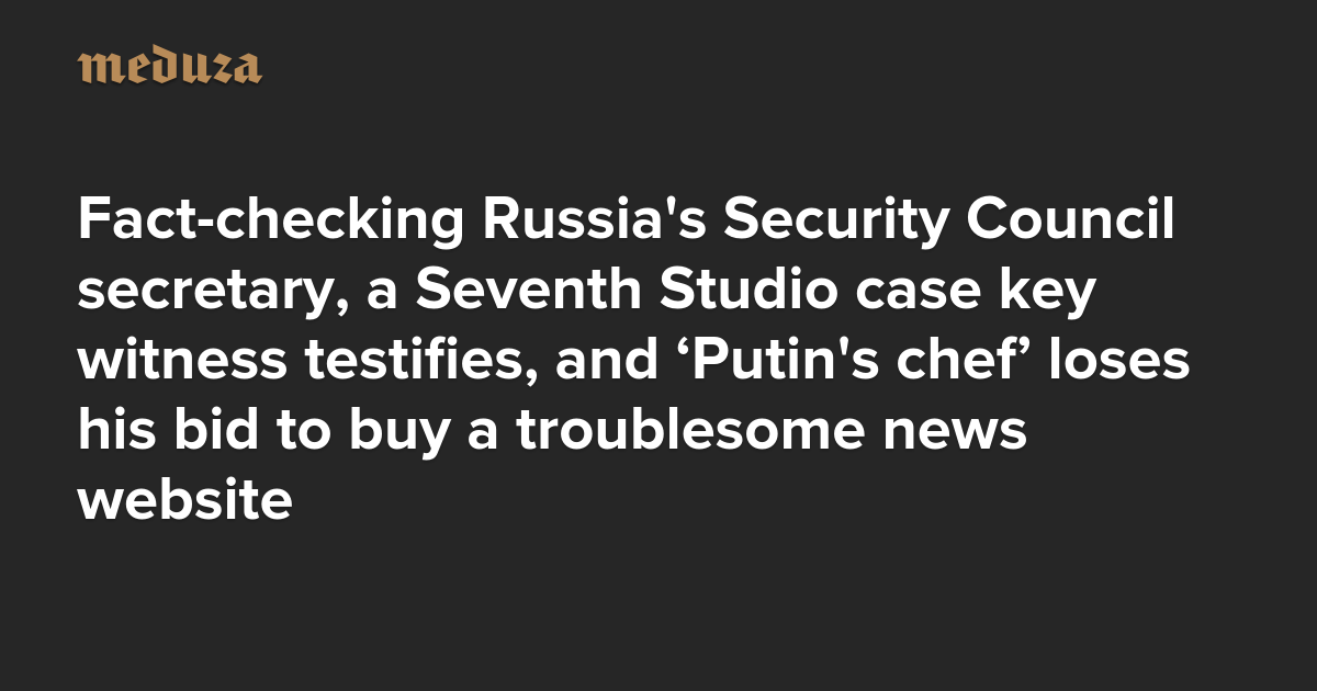 The Real Russia. Today. Fact-checking Russia's Security Council secretary, a Seventh Studio case key witness testifies, and ‘Putin's chef’ loses his bid to buy a troublesome news website