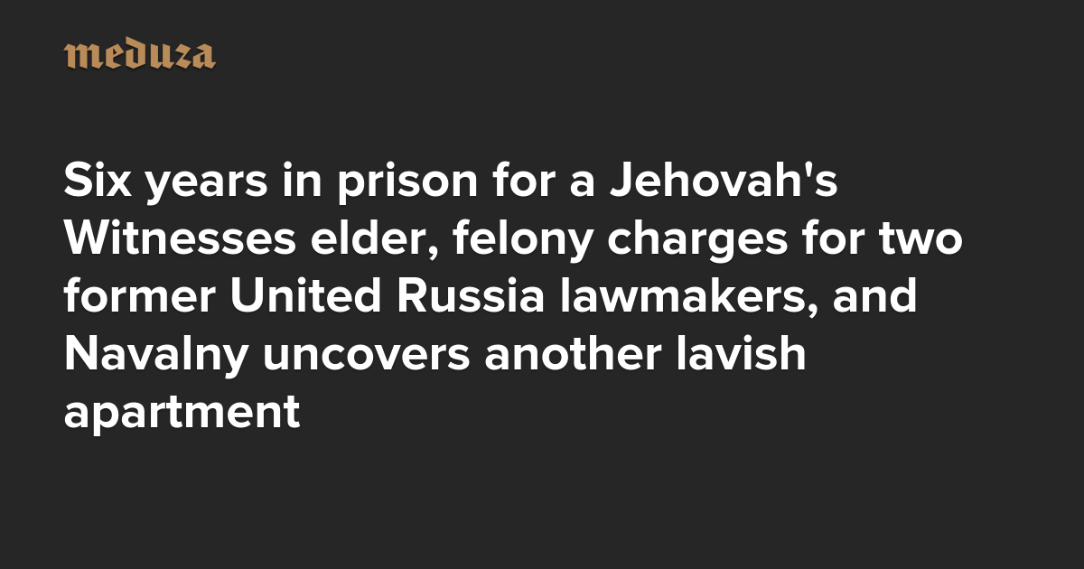 The Real Russia. Today. Six years in prison for a Jehovah’s Witnesses elder, felony charges for two former United Russia lawmakers, and Navalny uncovers another lavish apartment
