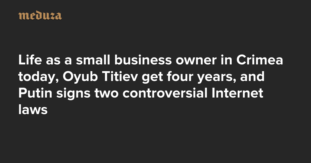 The Real Russia. Today. Life as a small business owner in Crimea today, Oyub Titiev gets four years, and Putin signs two controversial Internet laws