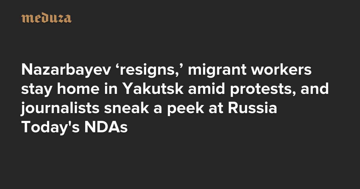 The Real Russia. Today. Nazarbayev ‘resigns,’ migrant workers stay home in Yakutsk amid protests, and journalists sneak a peek at Russia Today’s NDAs