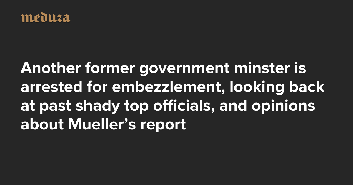 The Real Russia. Today. Another former government minster is arrested for embezzlement, looking back at past shady top officials, and opinions about Mueller’s report