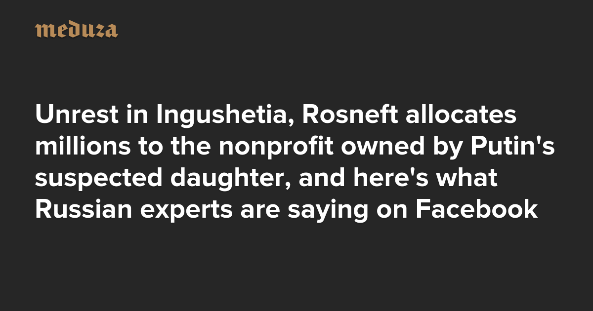 The Real Russia. Today. Unrest in Ingushetia, Rosneft allocates millions to the nonprofit owned by Putin’s suspected daughter, and here’s what Russian experts are saying on Facebook