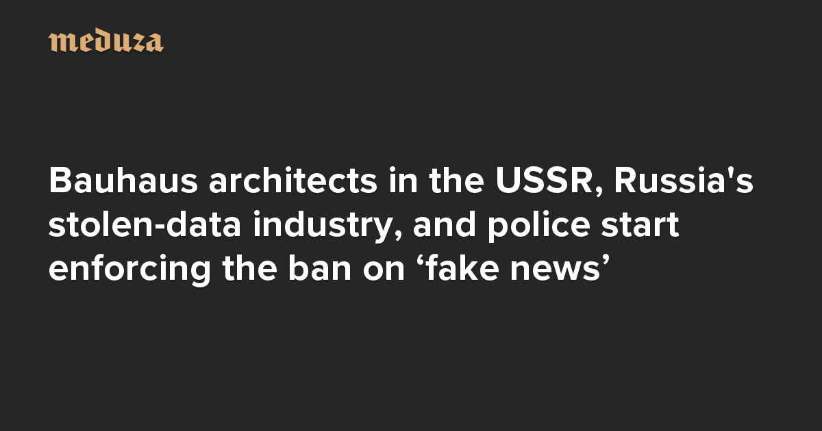 The Real Russia. Today. Bauhaus architects in the USSR, Russia’s stolen-data industry, and police start enforcing the ban on ‘fake news’
