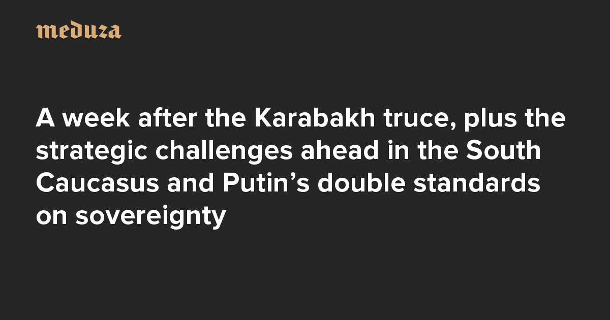 - 🕊️ Commenting on Putin’s November 17 interview about the Karabakh conflict, political analyst Tatiana Stanovaya says Putin’s recognition of Azerbaijani sovereignty (e.g., Baku can choose its own allies and reclaim its own territory) stands out against Moscow’s refusal to extend such privileges to Ukraine, Moldova, and Georgia. The difference, she says, is that Azerbaijan’s ambitions don’t threaten Russian interests, and Turkey is a partner, not an adversary. Stanovaya says she’s increasingly convinced that the Kremlin tailored its Karabakh policy in order to “flog” Armenian Prime Minister Nikol Pashinyan for courting the West.