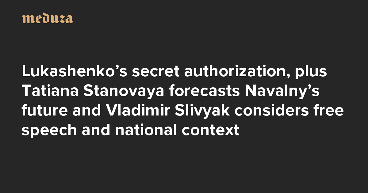 The Real Russia. Today. Lukashenko’s secret authorization, plus Tatiana Stanovaya forecasts Navalny’s future and Vladimir Slivyak considers free speech and national context