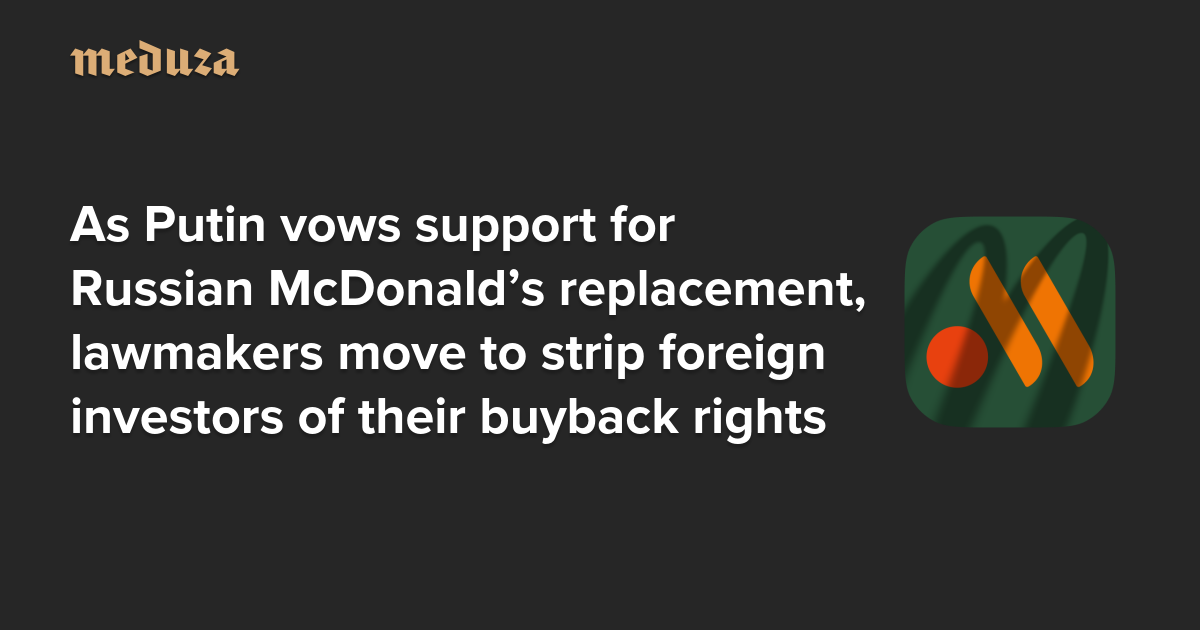 No take-backsies As Putin vows support for Russian McDonald’s replacement, lawmakers move to strip foreign investors of their buyback rights
