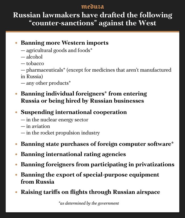 Lawmakers have drawn up a list of various prohibitions the government can impose against the U.S. and other countries in response to their sanctions against Russia.