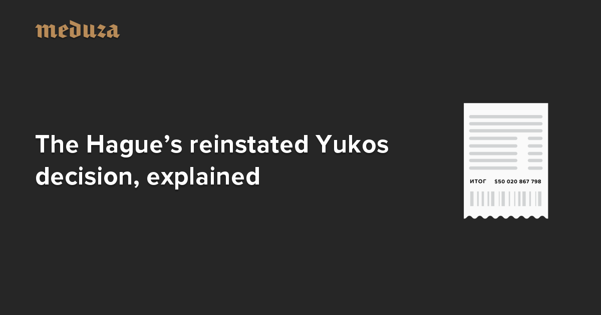 The Hague’s reinstated Yukos decision, explained Is Russia actually going to pay $50 billion to Yukos shareholders? Is Khodorkovsky getting any money out of this?