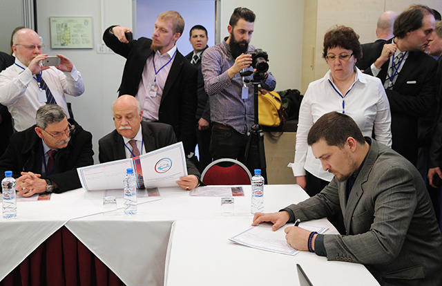 Alexander Kofman, the self-proclaimed Donetsk People’s Republic Minister of Foreign Affairs, was also supposed to come to the Russian conservative forum, but on Friday he told me that he “cannot participate in a rally of fascists and the ultra-right.” Milchakov said that Kofman is busy with other things, and he “doesn’t understand the forum and its goals.”