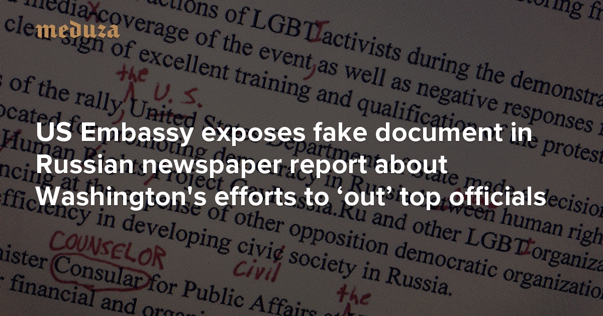 Really, ‘Izvestia’? US Embassy exposes fake document in Russian newspaper report about Washington's efforts to ‘out’ top officials