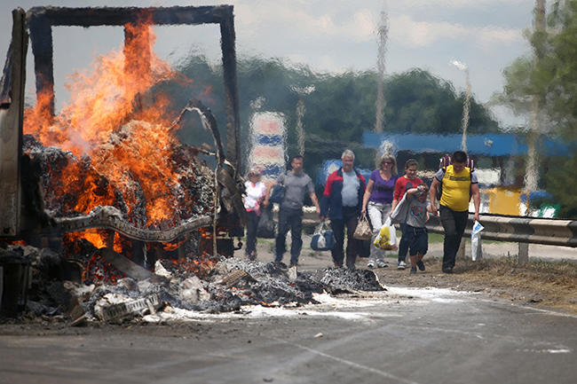 In the morning, we boarded six vehicles to the first line of defense [to Stukalova Balka]. When we started unloading, someone shouted, “They’re attacking!” and we looked down the road and saw two [Ukrainian] BTRs [armored personnel carriers] coming right at us. Everybody took up defensive positions.