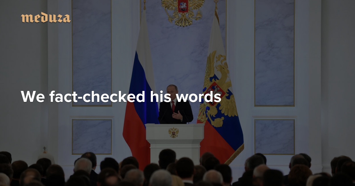 Vladimir Putin made his annual address to Russia’s Federal Assembly yesterday. As always, he spoke a lot about the country’s various successes and backed his claims up with statistics. Meduza fact-checked and commented on the most dubious fragments of the President’s speech.