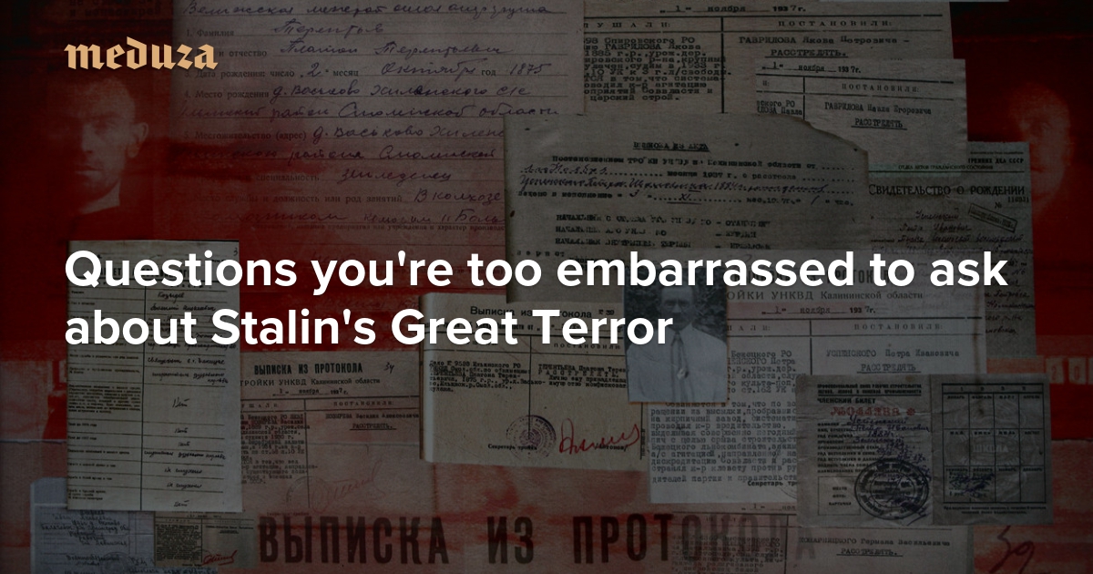 Eighty years ago, on July 30, 1937, secret NVKD order number 00447 was signed. This day is widely considered the start of the “Great Terror,” a period of political repressions lasting into 1938 during which no less than 1.7 million people were arrested, more than 700,000 of whom were executed. Soviet secret police targeted “enemies of the people,” “counterrevolutionaries,” “wreckers,” and their friends and relatives. To mark the anniversary of this human catastrophe, Meduza asked historian Sergey Bondarenko, who works with the civil rights society “Memorial,” to answer some of the most basic, embarrassingly ignorant questions about the Stalinist repressions between 1937 and 1938.