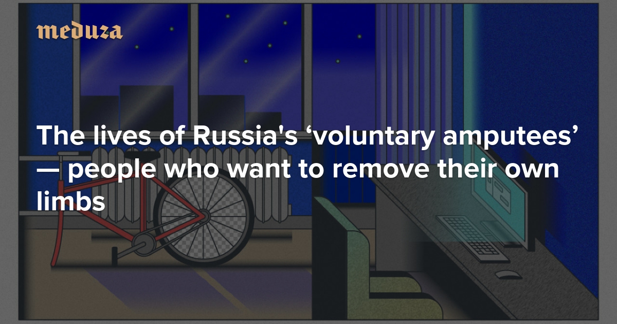 In Western medicine there is a psychological affliction known as “Body Integrity Identity Disorder,” or BIID. The condition causes otherwise healthy people to view one or more of their own limbs as a foreign object, and is often accompanied by the urge to amputate these limbs in order to feel “whole.” People with BIID often intentionally harm themselves out of the desire to lose unwanted arms and legs. Scientists only started studying BIID in the last 15 years, and all research so far has occurred exclusively in Western countries. There are, however, people living with BIID in Russia, where medical researchers have ignored the disorder entirely. Meduza correspondent Sasha Sulim learned about the lives of Russia’s “voluntary amputees.”