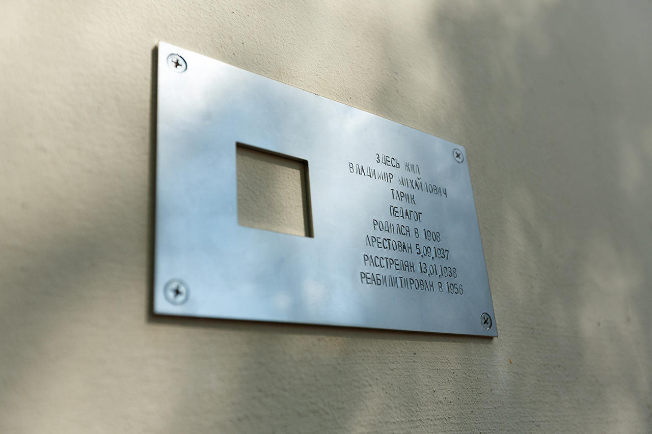 Tarik argues that installing the plaque was important for the preservation of his family’s memory, but he’s less confident when he talks about the societal impact of Last Address. “I’ve noticed that nobody looks at them. People just pass by. I don’t think the plaques have any impact on the city,” Tarik says plainly. “The repressions are discussed only very quietly, even on the 80th anniversary of the Great Terror.” He says the building’s residents didn’t object to the installation of the plaque, but they were apparently wary when he approached them. “They said, ‘Go ahead, and then they’ll lock you up.’ I’m afraid they’ll start calling me ‘son of an enemy of the people’ again, now that the plaque is up.”