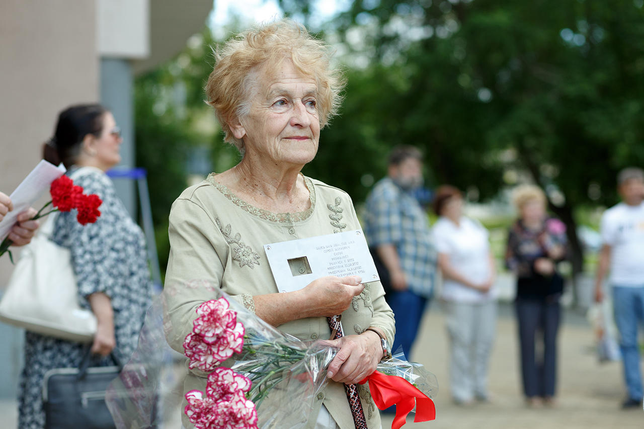 The association’s chairperson, Tatyana Osintseva, also first opposed the project’s tablet proposal, though she had her own reasons: She’s currently writing a book about the building’s history, where writers and scientists have lived since the 1930s, and she says she was already planning to install a large memorial plaque to recognize all the repression victims who once lived there. Osintseva says she also wants to place a memorial plaque at the Yekaterinburg train station, where the poet Osip Mandelshtam and his wife Nadezha spent a day in 1934, while traveling together to forced exile in Cherdyn. Memorial and Osintseva eventually agreed to cooperate on the train-station tablet, and she gradually became one of Last Address’ active supporters. In the end, the project’s members say she played the decisive role in winning permission to install the plaque memorializing Andriyashin.