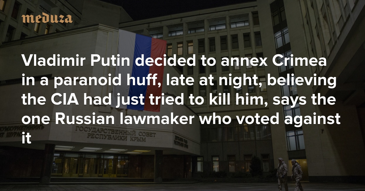 Vladimir Putin decided to annex Crimea in a paranoid huff, late at night, believing the CIA had just tried to kill him, says the one Russian lawmaker who voted against it