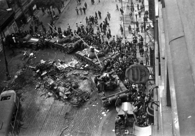 Czechoslovak President Ludvík Svoboda appealed to the nation, asking the public to avoid bloodshed. At the very outset of the Soviet invasion, Dubček and the other Prague Spring leaders were arrested and taken to Moscow. “Many will tell you that these were wonderful days,” says Petr Pithart. “For the first time in history, the Czech people found themselves without their rulers. There was no one controlling them, no one giving them orders, and the nation was true to itself. The people were clever, resourceful, and they even showed a sense of humor.”