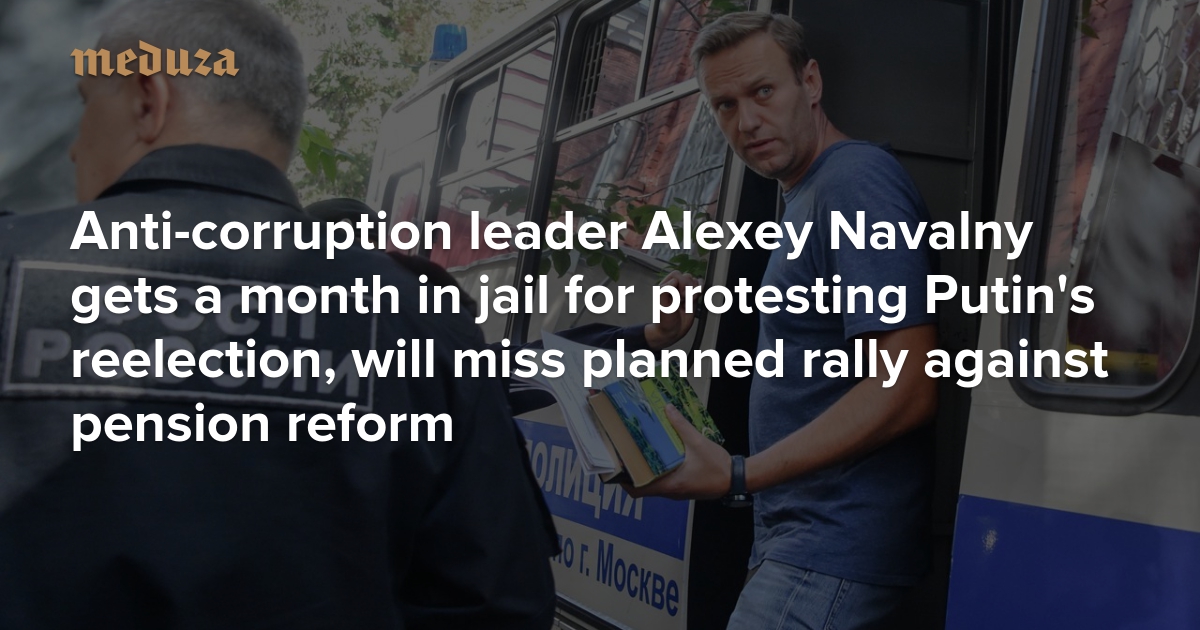 Anti-corruption leader Alexey Navalny gets a month in jail for protesting Putin’s reelection, will miss planned rally against pension reform
