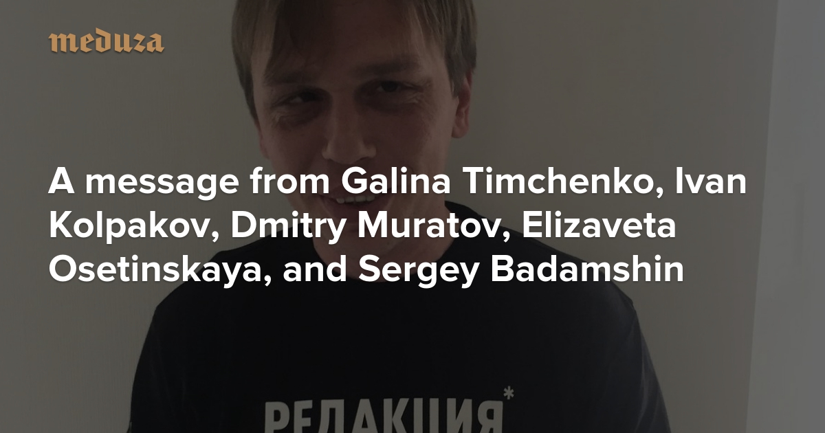 Ivan Golunov is free A message from ‘Meduza’ CEO Galina Timchenko, ‘Meduza’ Editor-in-Chief Ivan Kolpakov, former ‘Novaya Gazeta’ Editor-in-Chief Dmitry Muratov, ‘The Bell’ founder Elizaveta Osetinskaya, and attorney Sergey Badamshin