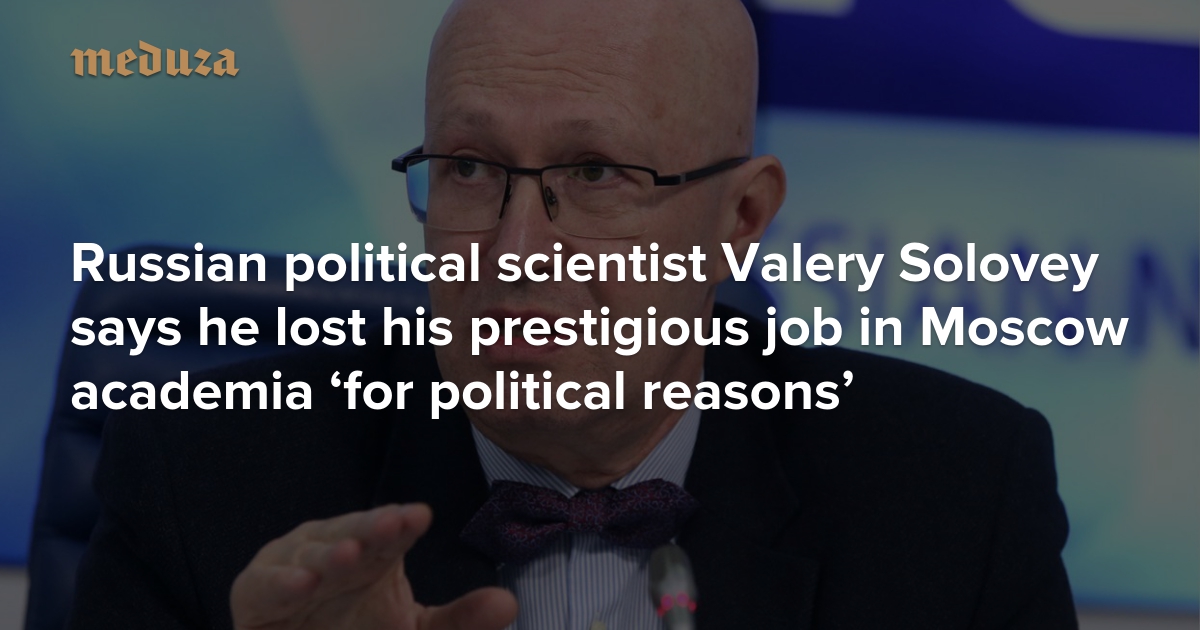 Valery Solovey told Meduza that he submitted a letter of resignation at the request of his department heads at MGIMO. He says he was led to believe that the school’s decision was “politically motivated” by forces outside the institute, who were apparently upset with his “anti-state propaganda and [efforts to] undermine [Russia’s] political stability.” “With high confidence,” Solovey says, “it can be assumed that powerful political pressure was exerted.”