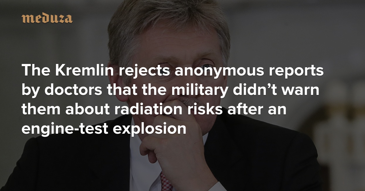 ‘Somebody wants to distort the truth’ The Kremlin rejects anonymous reports by doctors that the military didn’t warn them about radiation risks after an engine-test explosion