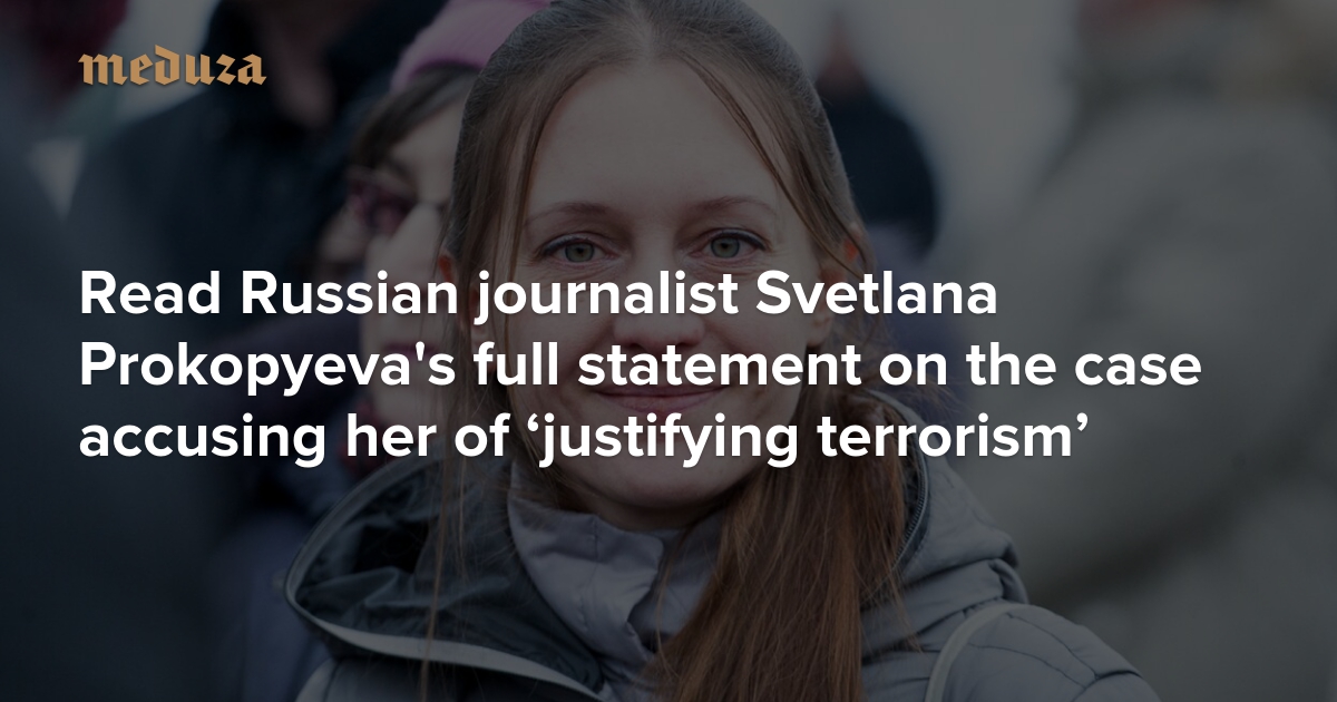 Up to seven years in prison for a two-page column Read Russian journalist Svetlana Prokopyeva's full statement on the case accusing her of ‘justifying terrorism’