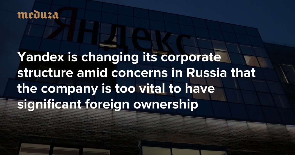 Sources at Yandex told Vedomosti that they are confident their new corporate structure eliminates the main political risks of future restrictions on foreign shareholders, and will sharply reduce state pressure on the company.