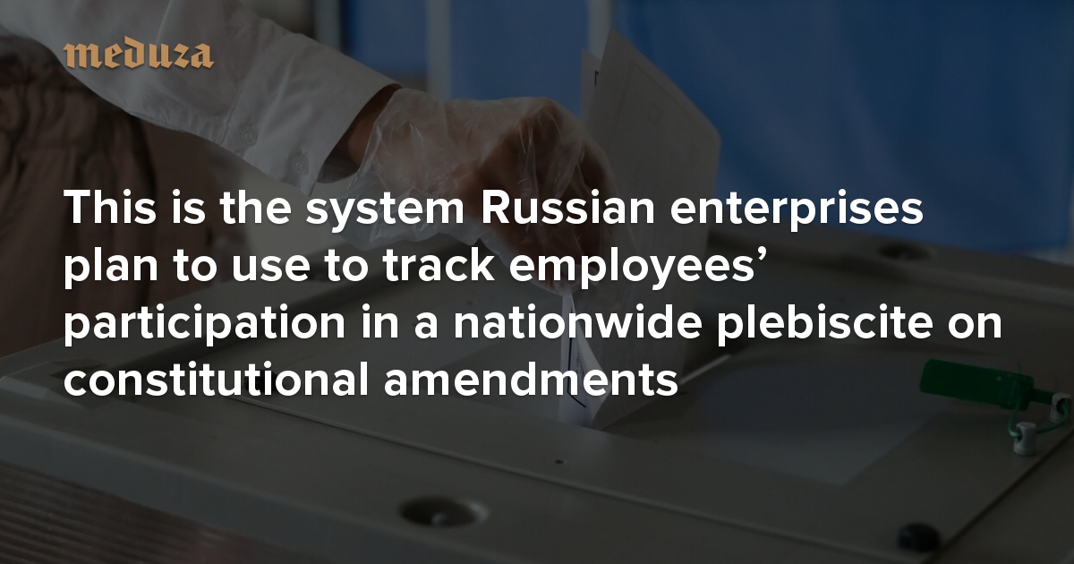 Voting as an ‘inter-corporate event’ This is the system Russian enterprises plan to use to track employees’ participation in a nationwide plebiscite on constitutional amendments
