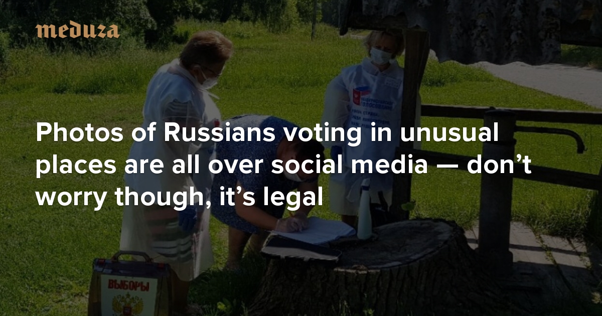 As it turns out, casting a paper ballot doesn’t necessarily involve a fully equipped polling station. Posts on social media show Russians partaking in the plebiscite in all kinds of unusual places, including on a bus, at a playground, and even on a tree stump next to a local well. We could go on, but it’s easier to see for yourself.