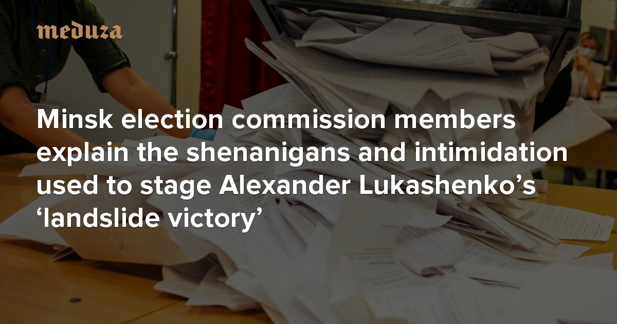 On August 14, the Belarusian Central Election Commission certified the 2020 presidential election results and confirmed that Alexander Lukashenko won a sixth term in office with 80.1 percent of the vote. Many Belarusians, perhaps a wide majority, believe this landslide victory was fabricated. That conviction now fuels a nationwide protest movement and work stoppages across the country. Students and graduates throughout Belarus have started leaving their diplomas outside schools in protest against the teachers they believe facilitated the election fraud. Many members of local election committees also say the voting results were falsified. On condition of anonymity, a handful of these election workers in Minsk spoke to Meduza about voting in early August and why they were unable to prevent Lukashenko’s victory by counting votes honestly.