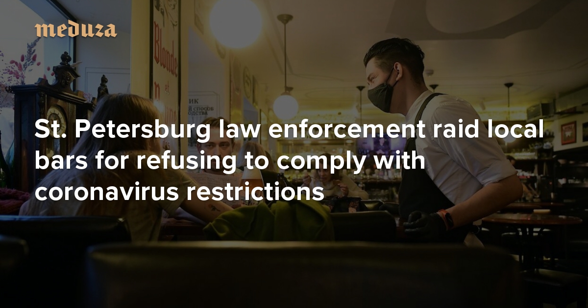 In St. Petersburg, officials from the Investigative Committee, police, National Guard (Rosgvardiya), public health authority (Rospotrebnadzor), and Property Control Committee carried out raids at local bars in the early hours of Wednesday, November 9. According to the Investigative Committee, three establishments were found to be violating anti-coronavirus measures (presumably, referring to bars that were operating after 11:00 p.m., which is contrary to official restrictions).