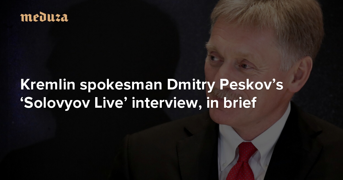 ‘Of course I like Putin’ Kremlin spokesman Dmitry Peskov’s ‘Solovyov Live’ interview, in brief