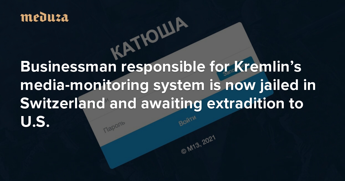 Back to Massachusetts Businessman responsible for Kremlin’s media-monitoring system is now jailed in Switzerland and awaiting extradition to U.S.