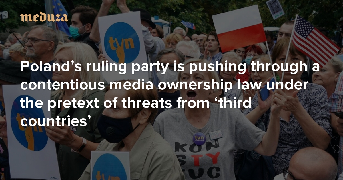 A new media ownership bill put forward by the ruling Law and Justice (PiS) party is stoking concerns about press freedom in Poland. The parliament’s lower house, the Sejm, passed the draft law in a scandalous vote on August 11. The law aims to impose restrictions on foreign ownership of Polish broadcasters, but critics argue that it targets one media holding in particular, whose television channels have taken a critical stance towards the current government. Members of the PiS insist the bill is a necessary safeguard against “third-country attacks” (apparently from the likes of Russia and China). That said, the legislation is in line with the ruling party’s long-running drive to take control of the media in Poland — a policy it’s pursuing at great risk. Indeed, disputes over the media ownership bill have already wreaked havoc with the ruling coalition. In a special report for Meduza, journalist Stanislav Kuvaldin explains why this contentious bill is a fraught endeavor for the Polish government.