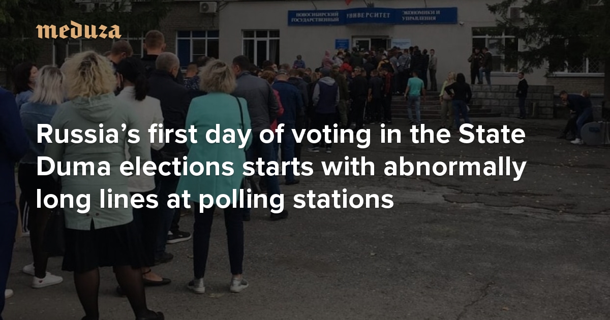 On Friday, September 17, Russia kicked off the first of three days of voting in the State Duma elections, as well as in a number of regional parliamentary elections. Things got off to a busy start with many polling stations seeing abnormally long lines of civil servants and military personnel looking to cast their ballots first thing in the morning. Journalists, human rights activists, and election observers were quick to point this out. According to Meduza’s sources, government employees were pressured to vote en masse before noon on Friday, to ensure maximum turnout from the get-go.
