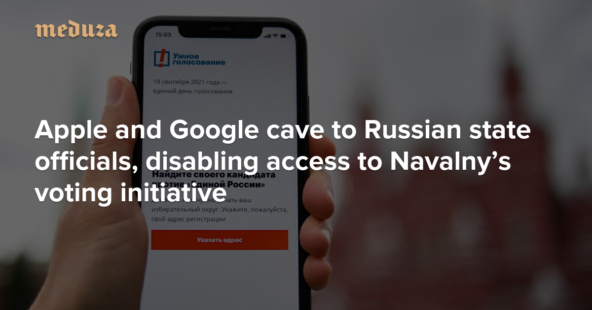 As nationwide voting in Russia got underway and just hours after company representatives met with members of the Federation Council’s “Sovereignty Committee,” the American tech giants Apple and Google both blocked Russian users’ access to Alexey Navalny’s mobile app on their online stores, the App Store and Google Play. Still accessible to users outside Russia, the Navalny app was one of the key platforms the imprisoned opposition leader’s team hoped to use to disseminate strategic voting recommendations in parliamentary races across the country. Meduza summarizes how the Russian authorities managed to disable the anti-Kremlin opposition’s key online mobilization tools, precisely when activists needed them most.